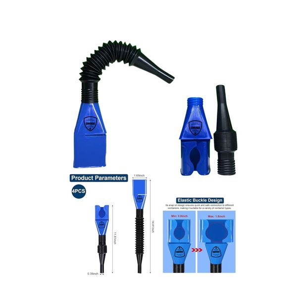 PLASTIC CLASP ANTI-SPILL FUEL TRANSFERRING FUNNEL WITH REMOVABLE/RETRACTABLE HOSE. UNIVERSAL CLIP-ON FUNNEL FOR DECANT.
